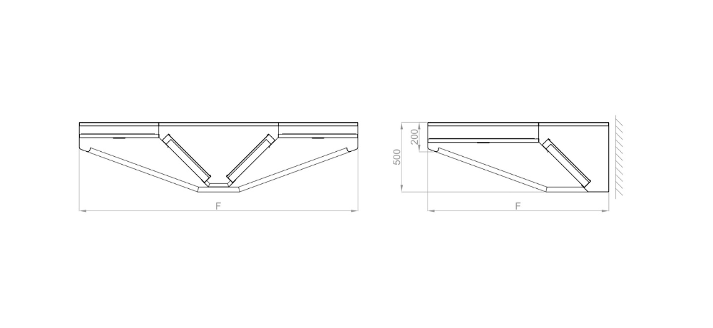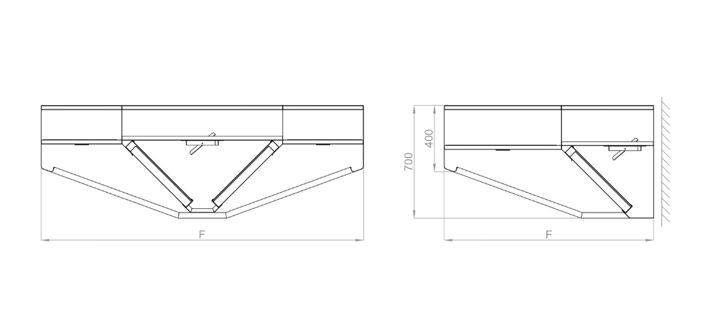 Campana extractora de 500 mm de altura con plenum de extracción incorporado y compuertas de regulación en campanas a partir de 2 m.